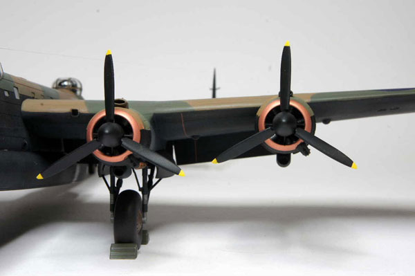 The cowls for the Hercules engines are the most obvious indication of the B.II. Each is moulded in two parts and this can cause a bit of problem when eliminating the joint seam as there is some raised detail that you will have to be very careful off otherwise you will sand it away. Each of the propellers is well moulded and fits nicely into the spinner assemblies. The Hercules engines fit onto the wing nacelles and the cowls slide onto the engines – the fit is very good and one the cowls are in place the props can be added, all very straight forward.