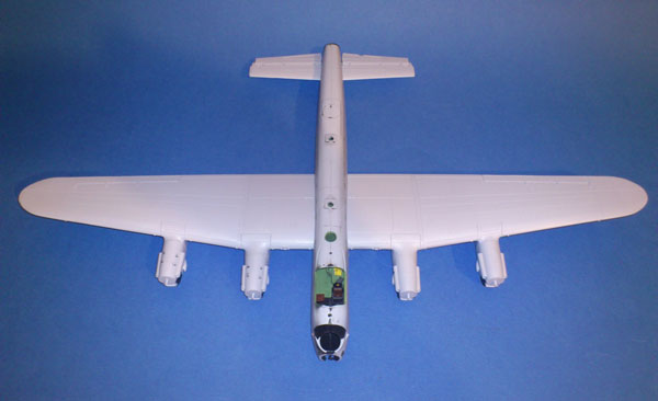 The time soon came to attach the wings to the fuselage. The instructions would have you attach the top half to the spar/fuselage assembly first, followed by the lower half. This actually worked out very well and enabled me to tackle the hairline gap left at the top wing roots from the inside. Again, well thought out from Airfix. The spars provide a good amount of support for the large wings and also hold the undercarriage bay structure, just like the real thing. Medium viscosity superglue was used to add strength to the upper wing spar joints, together with Plastic Weld liquid cement. I found that the horizontal tailplanes were very tight to fit and as such, I ended up splitting the joint on the aft lower fuselage. I think you should test fit these before joining the fuselage halves, and reinforce the inside of the joint with superglue as I did second time around. I have left off the fins for now to ease painting, but a dry run showed a fuss-free fit.