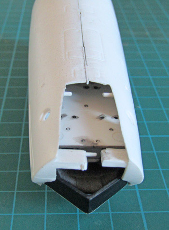 Before closing up the forward section of fuselage, ensure the rear bulkhead is aligned correctly as the instructions indicate it the wrong way round. Tabs to the rear please, as these help align the join to the main fuselage.