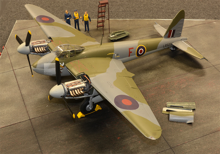 Using the Airfix 1/24th scale Mosquito as his base model, Gilles’ aim was to produce a diorama scene of De Havilland Mosquito LR503 ‘F for Freddie’ as it tested its engines at Calgary airport on 10th May 1945, just one hour before it was destroyed in a tragic flying accident. Recreating a famous photograph of the scene which was taken from the top of the control tower whilst the airport’s illustrious visitor was being prepared for flight, this would be a demanding build which would not only challenge Gilles’ modelling skills, but also his skills in incorporating the necessary electronics.