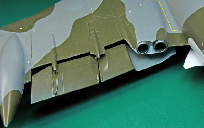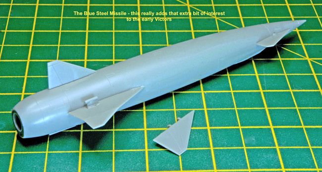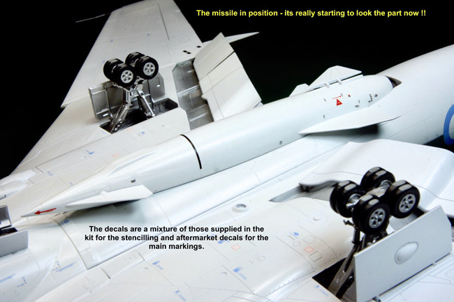 I now turned my attention to the Blue Steel Nuclear Missile and in my opinion the addition of this really makes this model. The missile is simple in its construction and is all white. There are some decals which add a touch of interest to it and it nicely slots into the bomb bay recess.