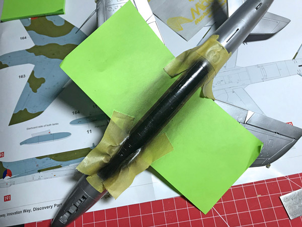 All looks good but wait… damn! Can you see the faint ‘ghost seam line’ along the fuselage underside join. This is exactly what can happen when you push things along. Ideally I leave the model for at least 3 days after sticking the fuselage together before going anywhere near it for sanding and buffing. The glue takes longer to go off than you may think and I’m convinced this is what causes these ‘ghost seam lines’.