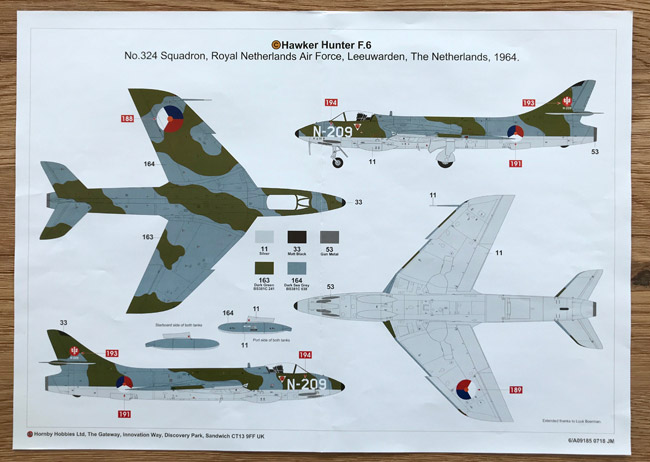 Well, having recently finished the lovely Revell 1:72 Hunter FGA-9 in RAF markings I just have to go for the Royal Netherlands Air Force Hunter F.6 offered in the kit (Option C). It’s also a nice chance to give you all something different, especially all our friends who like RNAF subjects :)