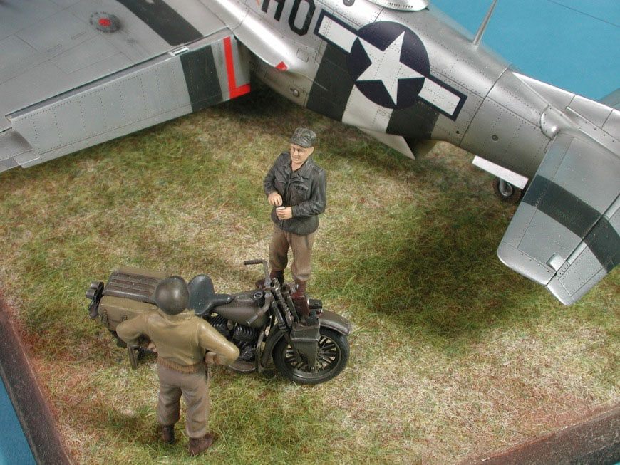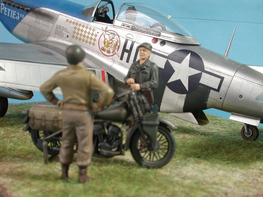 I had also been working on the side on a couple of figures and a Military Police bike. These items come from assorted Tamiya 1:35 accessories kits. I tried a couple of new techniques for painting the figures and am happy with my progress to date in that respect. All I really want is for the figures to not detract from the aircraft model :)