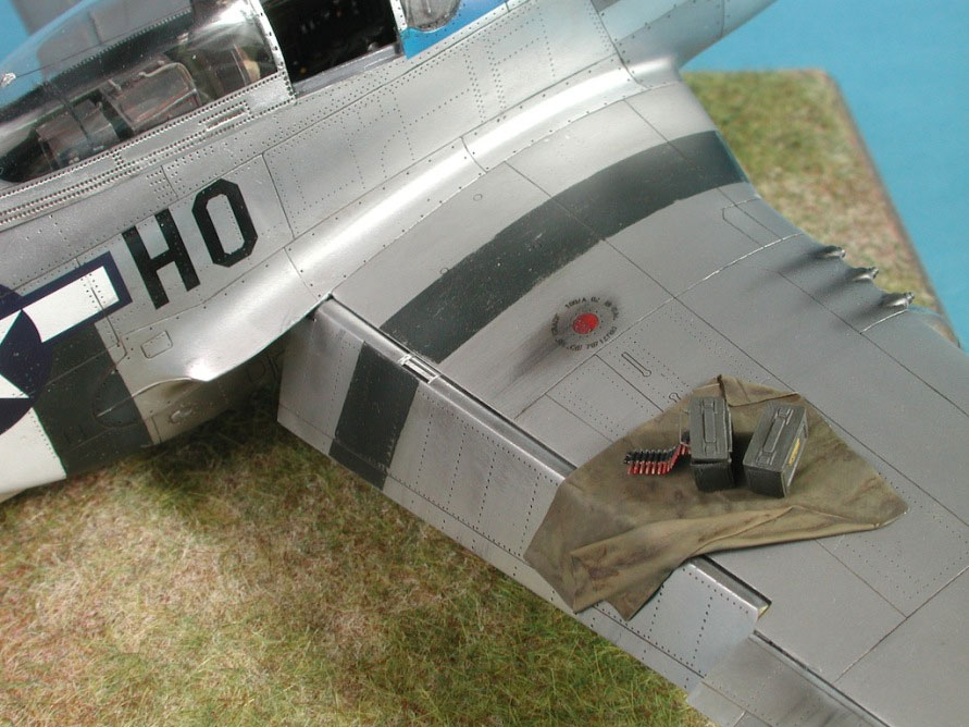 Rather than try and glue and sand back the crack in the wing, when I displayed the model at my local IPMS club, a few chaps suggested I just cover it up (literally) with a sheet or tarp. I liked the idea and ran with it. Some lead foil and a couple of 0.50 cal ammo boxes did the trick.