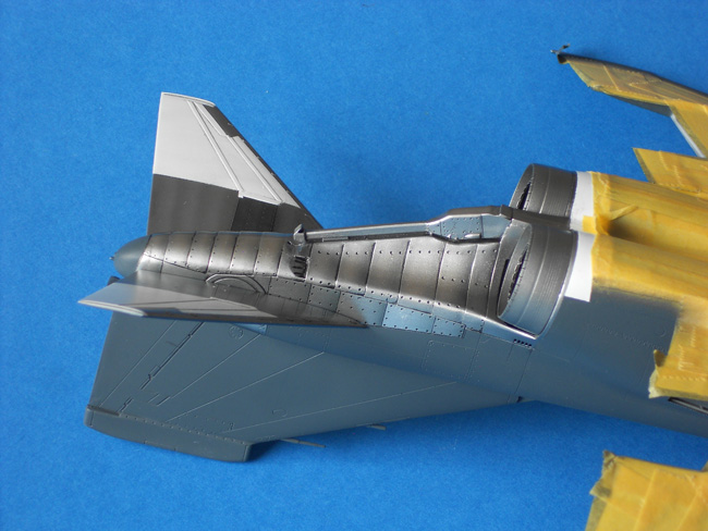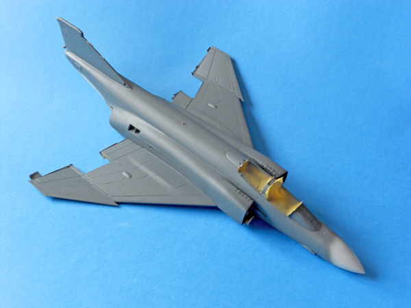 I also scratchbuilt an incredibly fiddly periscope for the left side of the canopy centre section, which delayed me installing this bit. That was next on the agenda which meant I could then mask up the cockpit openings properly, and the EDSG could go on.