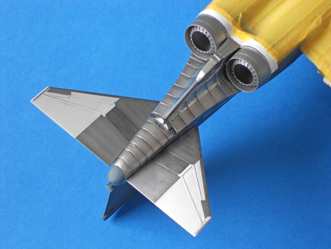 So, experiments with AK metallics were performed. They went on well, covered nicely and they have a lot of colours in the range. However, many of those colours look VERY similar to each other and they don’t half pong. They’re also not as fast to dry as Alclad2, as I found to my cost when I accidentally handled a segment I’d sprayed about half an hour ago and left fingerprints. I had to leave it to harden off overnight before I could sand it smooth and respray. Covered ok though. It also needs a while before it’ll take masking tape. I found out (again the hard way) that they’re a bit like Tamiya gloss acrylics, in that the masking tape tends to leave a pattern in the surface if they’re not given enough time to harden off.
