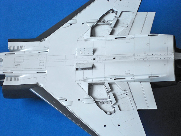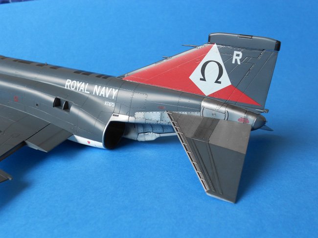 Unfortunately, I once again failed to plan ahead and take account of the fact that with the tailplanes in place, most of that nice shading effect is hidden from view!