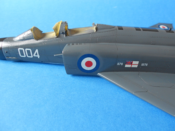 It’s a good job we modellers are patient folk, isn’t it? I was peacefully applying the topside decals, when I noticed that they’re printed slightly out of register, so that the roundels and the red fin flash all had a nice white border halfway round them, which shows up a treat on EDSG…
