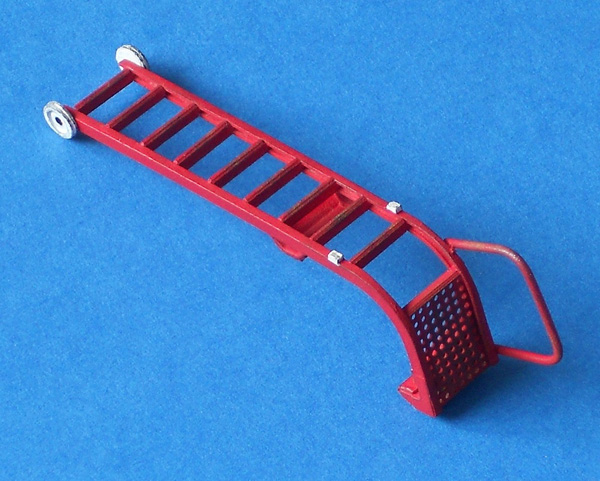 It’s white metal and etched brass, and the steps were so fiddly that I doubt that I could have bent them into their proper shape without a Hold ‘n’ Fold tool. I haven’t put the wheels on it here, as they needed to be painted white as they were apparently white nylon.