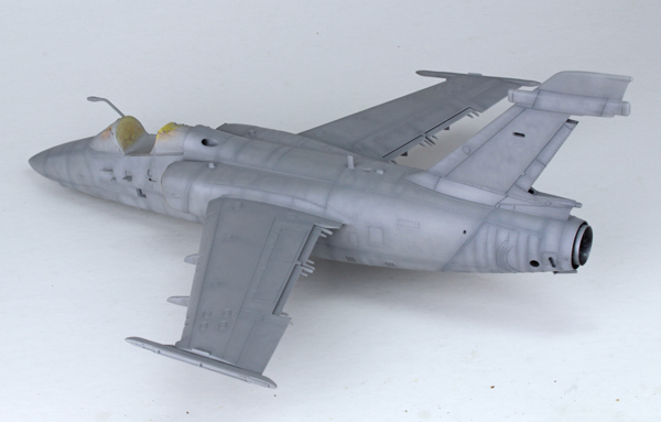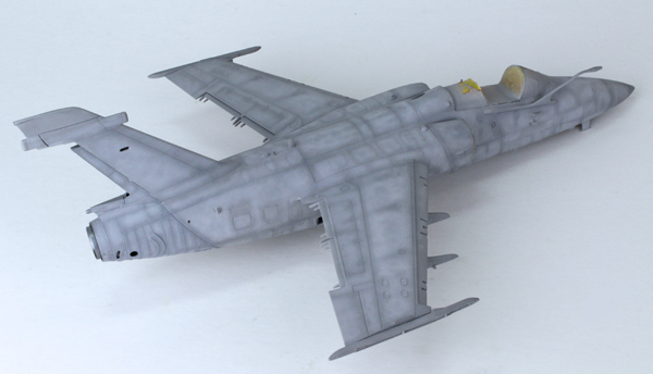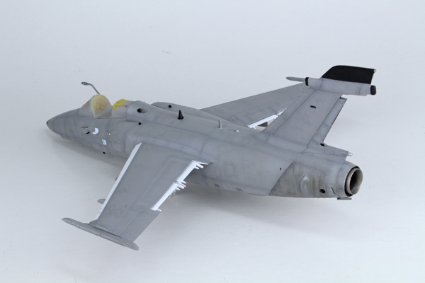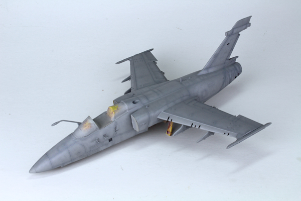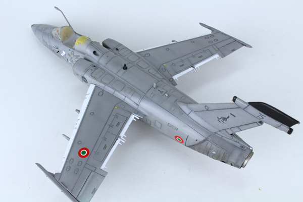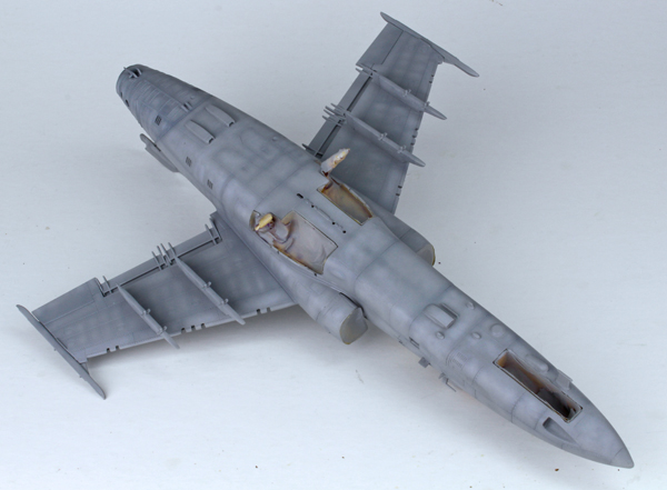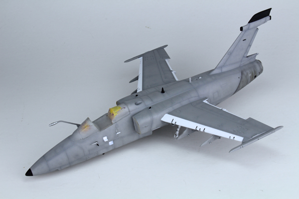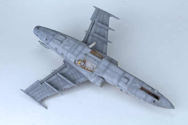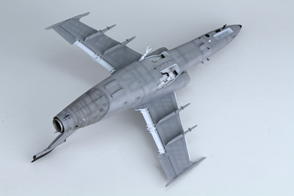 I used a highly thinned mix of Tamiya’s flat black (XF-1) and red brown (XF-64) to create some streaking on the lower surface. The same mix was used to highlight a few of the panel lines around the airframe to add some general dirt and grime. Once this had dried I added most of the smaller parts that I had left off to aid in the painting process, or in fear I’d break them off during the build. This was followed by a coat of Mr Hobby’s matt clear varnish thinned with their own acrylic thinner.