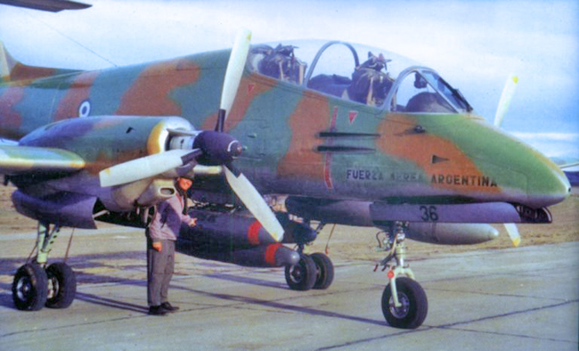 Three Pucarás were destroyed and one of their pilots killed at Goose Green by cluster bombs dropped by 800 NAS Sea Harriers on 1 May 1982. Six more were destroyed in the SAS Raid on Pebble Island on 15 May 1982.
