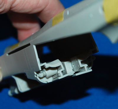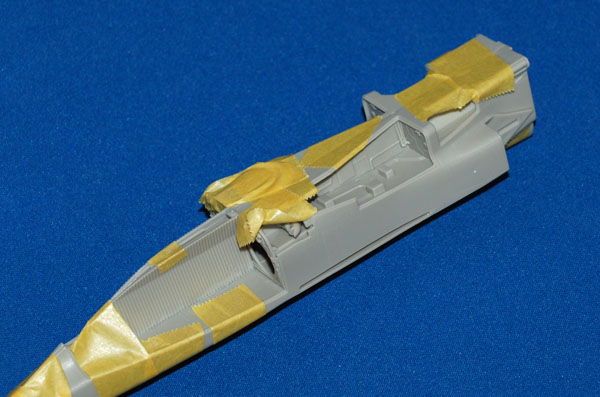 Well, the fit is ok and using plenty of liquid poly and masking tape it’s again all set aside to dry completely. The join when I returned is still too pronounced and cyano is used to fill the join line and I will sand and re-scribe this later as needed.