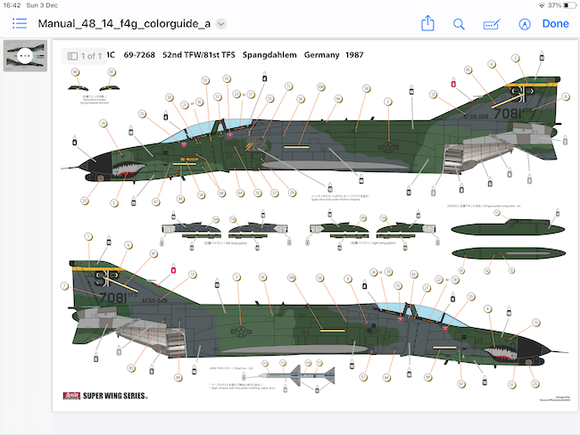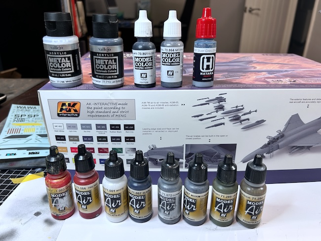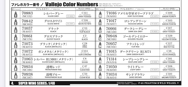 The Zoukie-Mura 1/48 F-4G is coincidentally the same frame as the Meng (there must have been other options they could have chosen!) so I am using ZM’s paint scheme, which conveniently shows the Vallejo colours needed to recreate the scheme. Meng use AK paints as their recommended product, which are laid out very neatly on the side of the box, I simply don’t use that product.