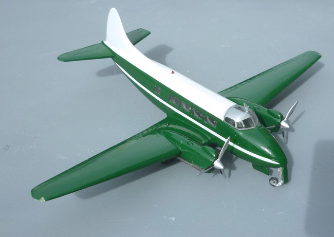 I also painted a white area along the length of the fuselage under the windows. This was for a white cheat line. I covered the line with a strip of thin masking tape. Then I painted the rest of the aircraft using a dark Brunswick green acrylic (Hu 3). This was done by brush. When the paint had dried, I peeled off the masking tape leaving a clean line between the white and green and a thin white cheat line.