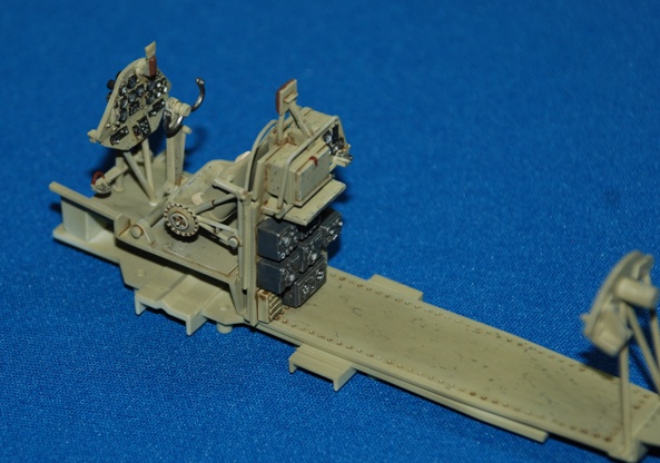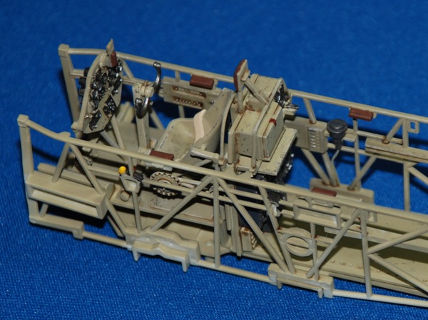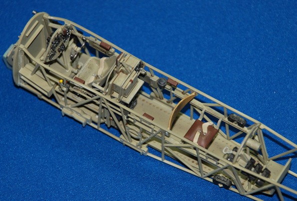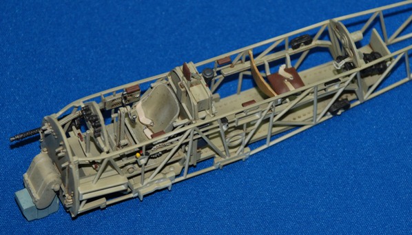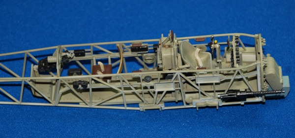 Very straightforward, but do keep checking the alignment and exact position of the parts before adding glue though as it would be easy to make an error. In particular make sure the cockpit cage sits snug up against the fuselage side wall and under the sill; the front engine fire wall sits completely flush with the front edges of the fuselage and the semi-circular rear wall mount for the rear-facing MG sits snugly under the upper rear fuselage join. The front of the cockpit cage sits in vertical guide rails and when you offer up the cage it becomes apparent where it’s supposed to fit. I used some bulldog clips to hold the cage in place while the liquid poly dried.
