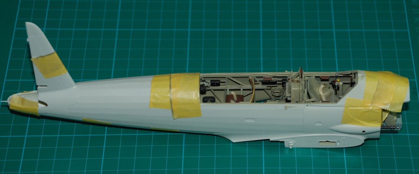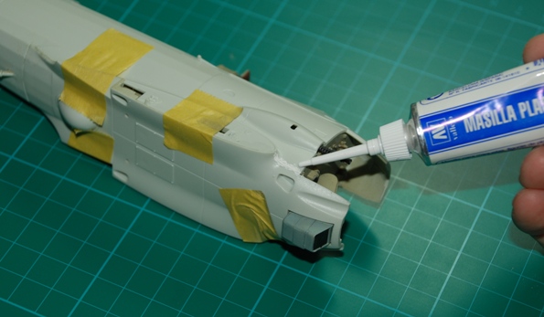 When I left you last time the fuselage was just being joined and the fit is generally good. I did have a stubborn gap that although small refused to close despite some careful ‘adjustment’ with my scalpel and plenty of test-fitting. The only thing left was to get out the Vallejo fine thinner and thanks Bob at MDC for this – what a good filler this is. The best bit is the pointy nozzle that allows you to locate just the right amount of filler where it’s needed and this minimises sanding later and limits potential damage to the surrounding area.
