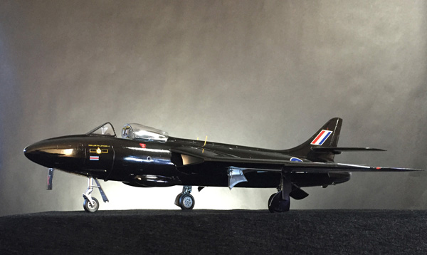 I thought you’d like to see Dave’s completed model right up front – how nice is that! Add a little bit of moody lighting and the Hunter shape in that Black Arrows No.111 Sqn RAF livery looks stunning to my eye :)