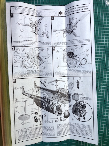 Upon arrival a quick perusal, followed by a visit to the Scalemates web site confirmed that I appeared to have one of the first boxing’s. Yes this kit had been in the box for 68 years, having been first issued in 1955. This is very much a kit of its era, with nostalgic box art, mainly descriptive instructions minimal decals and a fair bit of flash. Amazingly enough for an unsealed box, everything was present and correct (if a little shook up).