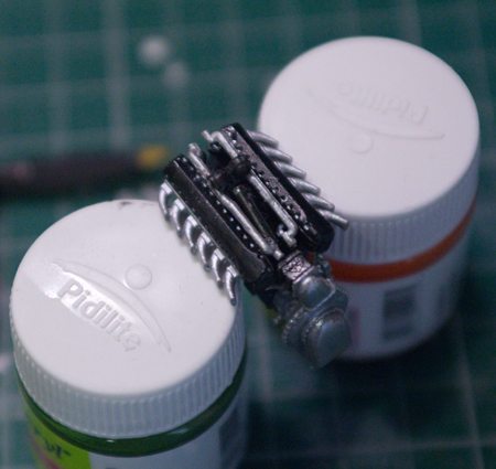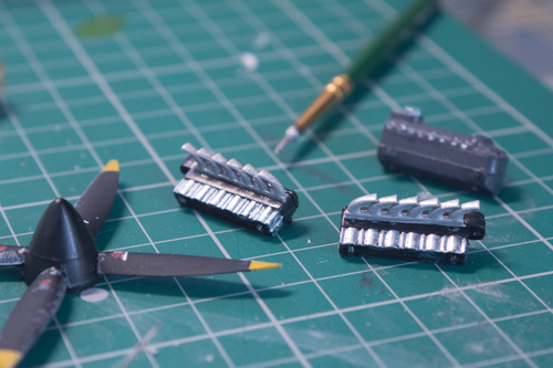 The engine is simple enough to do. The easiest way to build it is to glue all the small parts together and have as few pieces as possible before getting to the painting stage. Now, I like displaying aircraft with all the panels on so I can admire their forms, and the Spitfire is an especially beautiful form, so I shall not put the engine on display. Although the engine will not be visible on the finished model, I like to give it a passable paint job anyway. I don’t like having a model and knowing that I skimped on finishing an important part just because it wouldn’t be visible. So this little bit was for you more conscientious folks out there.