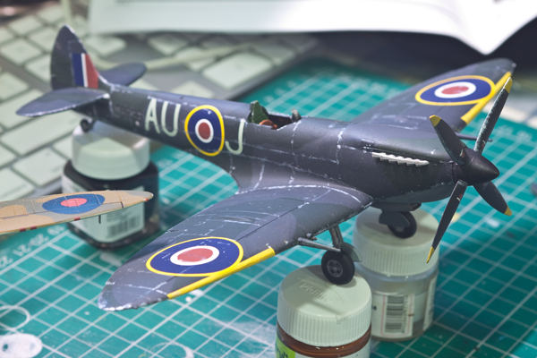 After finishing with the camouflage, I clear coat it with some artist’s matte varnish out of a can. You don’t have to use the most expensive one but don’t use the cheapest one either. A brilliantly painted camouflage can be ruined by a bad varnish. The cheaper ones tend to leave a grainy texture over the paint, making a mess out of the appearance of the aircraft. The expensive ones leave a nice and flat coat over the paint. I recommend Winsor & Newton Professional Varnish. After clear coating the camouflage, I use 3 coats of grey paint to paint the underside of the aircraft and I clear coat it too. Now I don’t have access to dedicated shades matched to the original aircraft colours so I custom mix all my colours and as a result, I have to take some liberty. It’s okay as long as I don’t mind a little bit of inaccuracy. Modelling is supposed to be fun, after all.