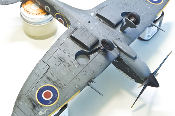 With the wash wiped off and the underbody clear coated, we can glue the canopy on and attach the propellor. To paint the canopy, I don’t use any masks, so I do it by hand using a 00 sized round brush. You may do this but I’d only recommend it if you have a steady hand. You can use a liquid mask before painting too, that’s up to you.