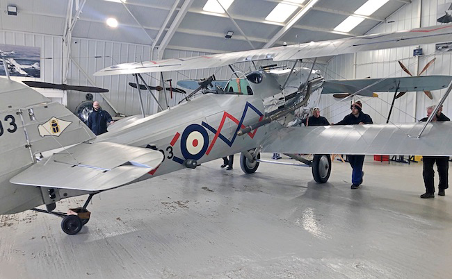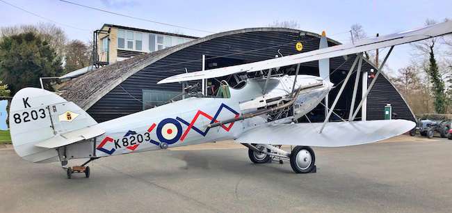 In March I paid my first ever visit to see the Shuttleworth Collection at Old Warden aerodrome in Bedfordshire. I was meeting a couple of friends there who were both volunteer guides which had several benefits, not least free coffee! As we walked into one hangar there was much activity moving aircraft around; John was able to ascertain that the Hawker Demon was being taken out and serviced prior to a “fly over” at its late owner’s funeral, Howell Davies, who had an illustrious career in the RAF flying amongst others Vampires and Vulcans.