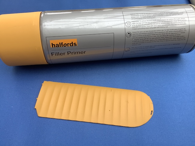 It was clear that a lot of sanding was going to be necessary to take those ridges down, but I also thought that this could be lessened by flattening out the troughs in between the ridges. So I sprayed several coats of Halfords Filler primer, a slightly thicker version of their ordinary primer: