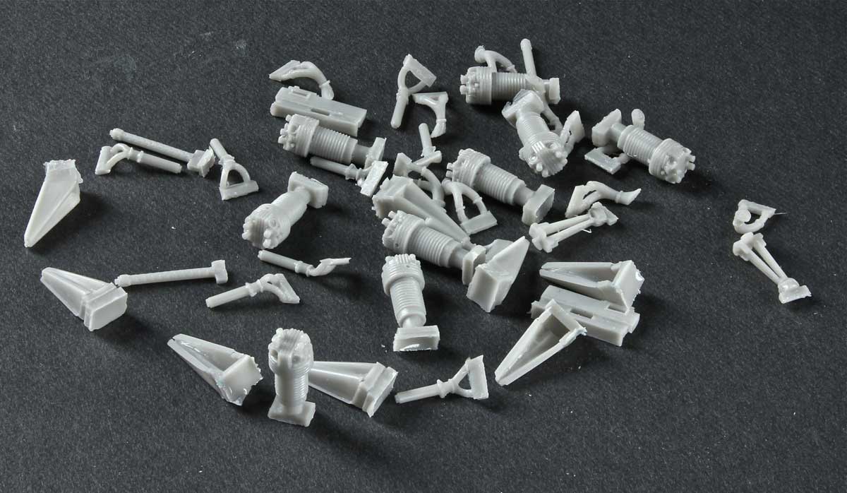 The bits are in these two bags along with some other parts, the push rods in a third. The exhaust manifold is fixed later in the procedure. The “V” shaped castings in the first photo are the bodywork pieces that sit behind the engine presumably for airflow reasons. They conceal a good part of the engine build.