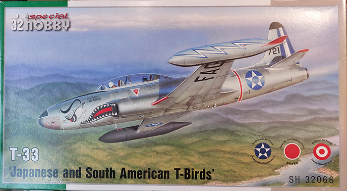 Although the Shooting Star is one of the most significant jet aircraft ever built, this is the first time, to my knowledge, that it has been kitted in 1:32nd scale. First produced by Czech Models in 2009 as a P80C, the T33 version appeared the following year. Both models were then re-boxed under the Special Hobby banner in 2014 with new decals and PE for various operators. This particular boxing of ‘Japanese and South American T-Birds’, contains a total of five different markings.