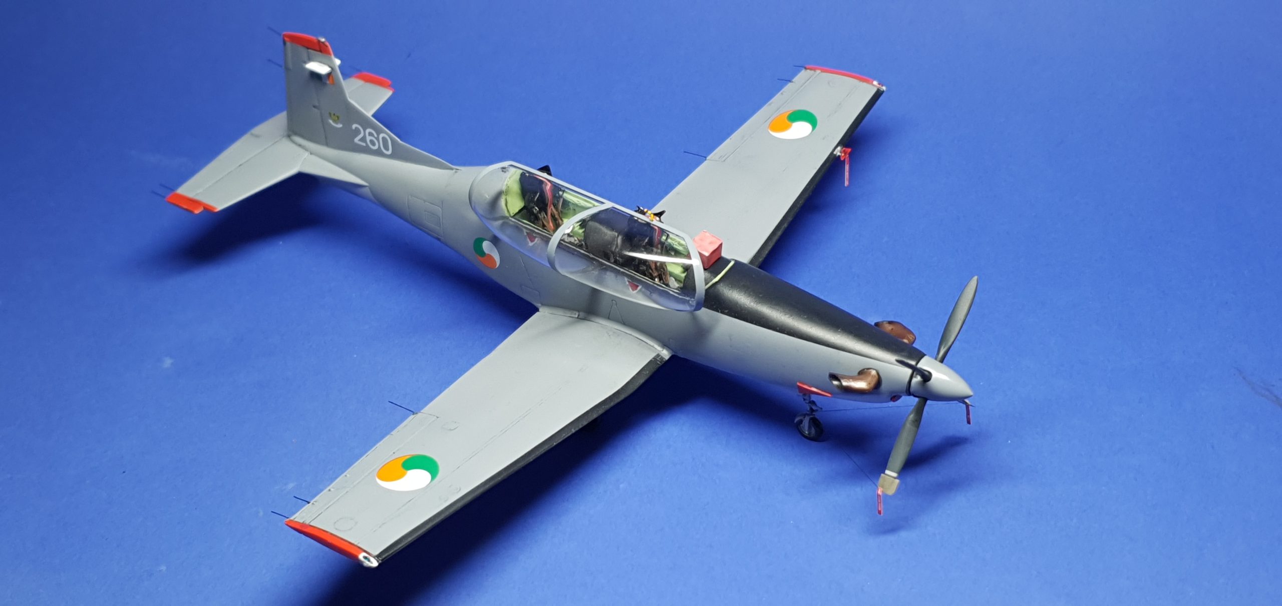 As with its cousins, the Tucano and Texan II the PC-9 is a very capable aircraft powered by a Pratt & Whitney PT6A-62 Turbo Prop engine that gives a 275 knot cruising speed and 320 knot max at a service ceiling of 25,000 Ft to a range of 850 miles. The cockpit is furnished with Electronic Flight Instrumentation System (EFIS), Head Up Display (HUD) and Martin Baker C6 A ejection seats. Armament comes in the form of 2 X 70mm FN LAV7 rocket pods and 2 X 5” FN HMG gun pods with 250 rounds per pod. Ferry Tanks can also be fitted.