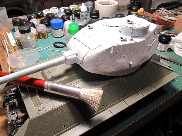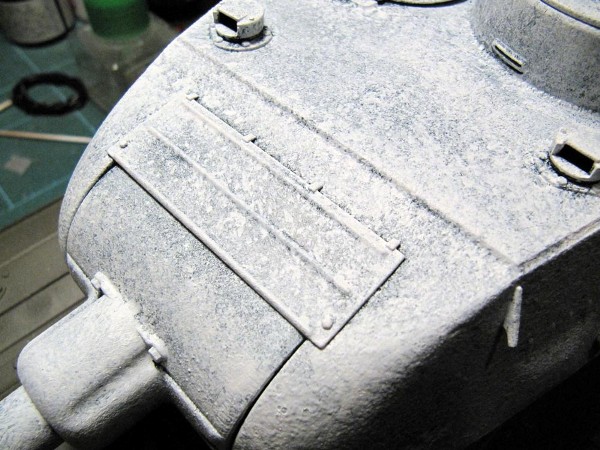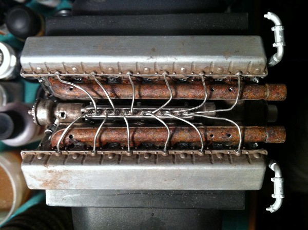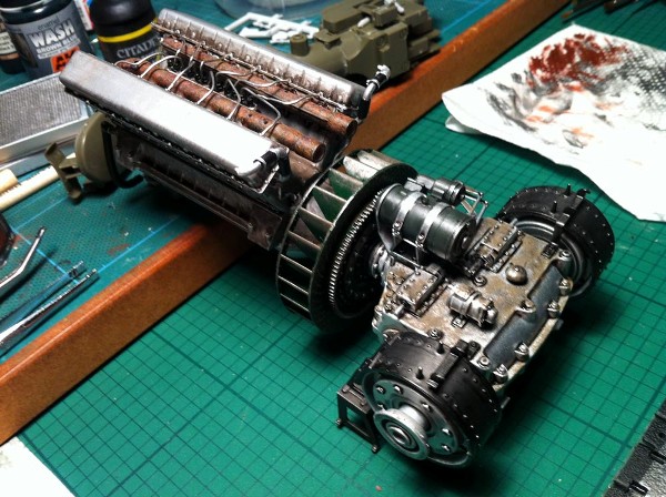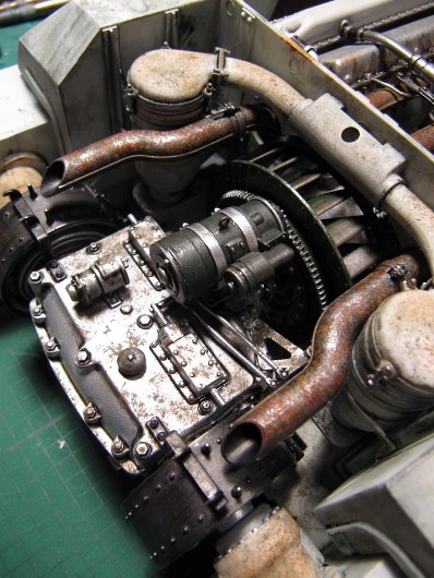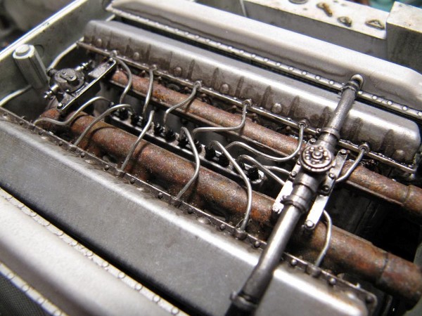 The injector pipes on the top of the engine seen here were added, and the cables in the turret were added, as the boxes looked a little ‘disconnected’.