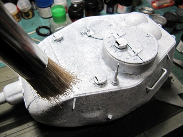 The white paint in these shots was stippled on, using the brush in the shot, then weathered and burnished, before the rubble was added, the big bits being glued on individually.
