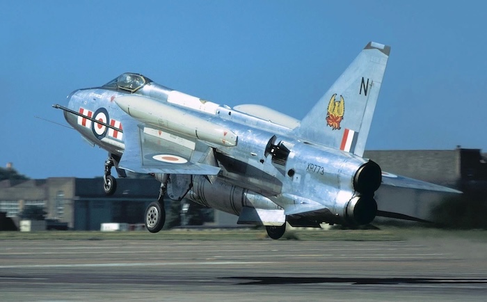 (Photo: English Electric Lightning F-6 XR773 ’N’ of No 56 Squadron RAF landing. Credit to original photographer)