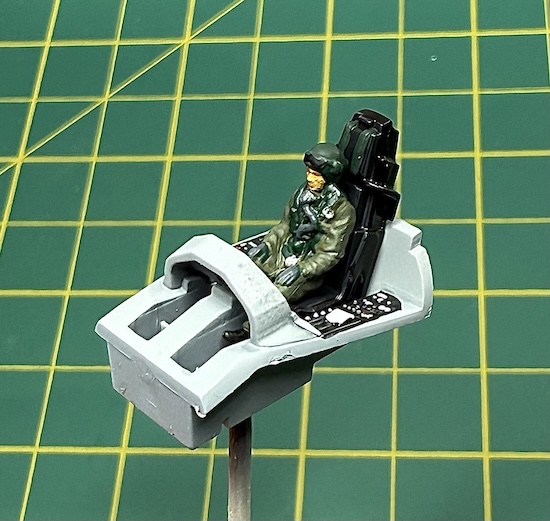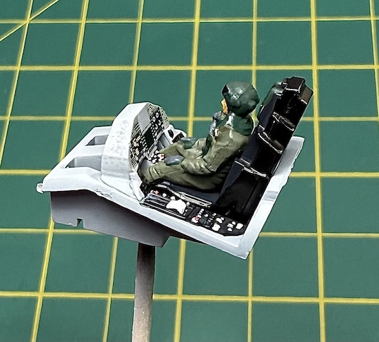 The build starts with the cockpit. This is a very simple affair with minimal parts and the cockpit instrument detail coming in the form of decals. I was going to build the model in flight so the kit pilot figure was used. The detail is quite simplistic with no HUD unit but this kit is designed for beginners so this is no surprise.