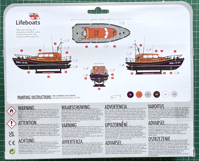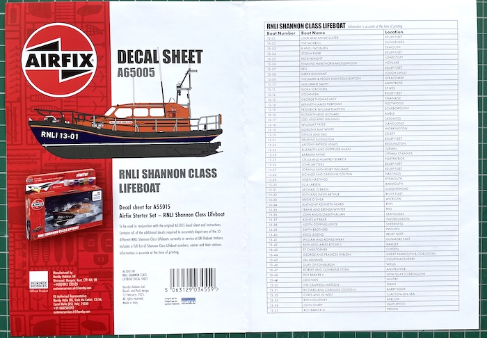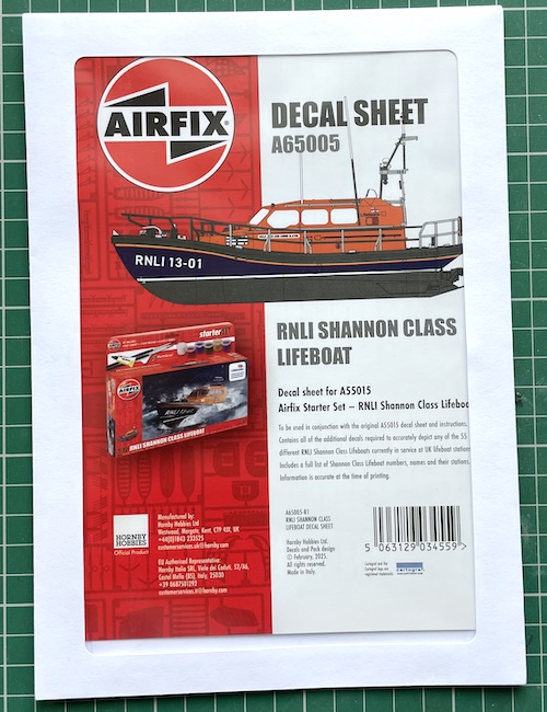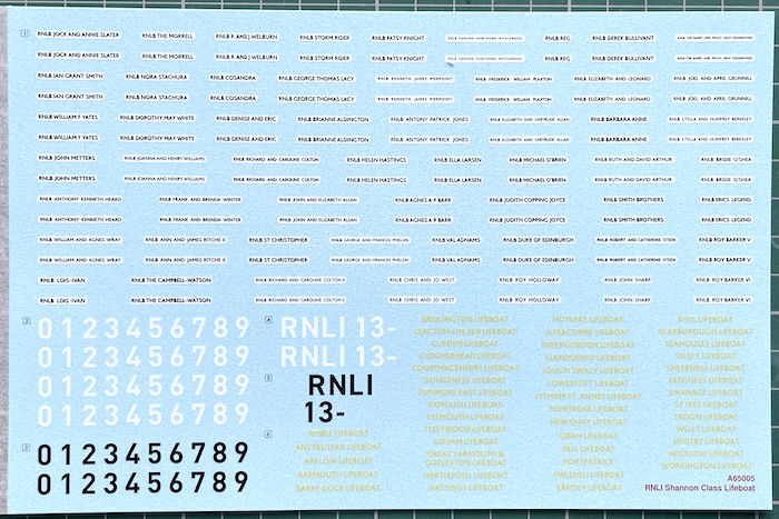 Just before we head into the build proper, it’s worth mentioning that Airfix have released a separate decal sheet covering all the Shannon Class RNLI lifeboats currently in service (2024) and so I bought that as I want to give my completed model to our friends – let’s hope they like the end result…