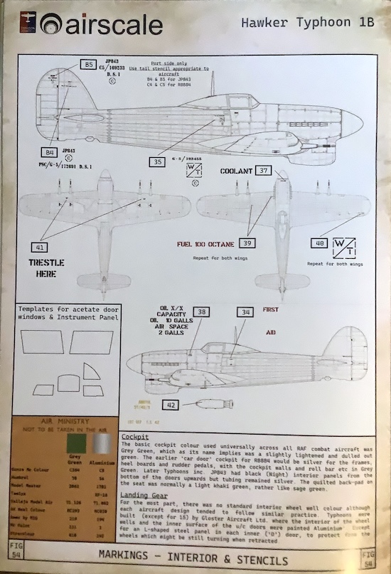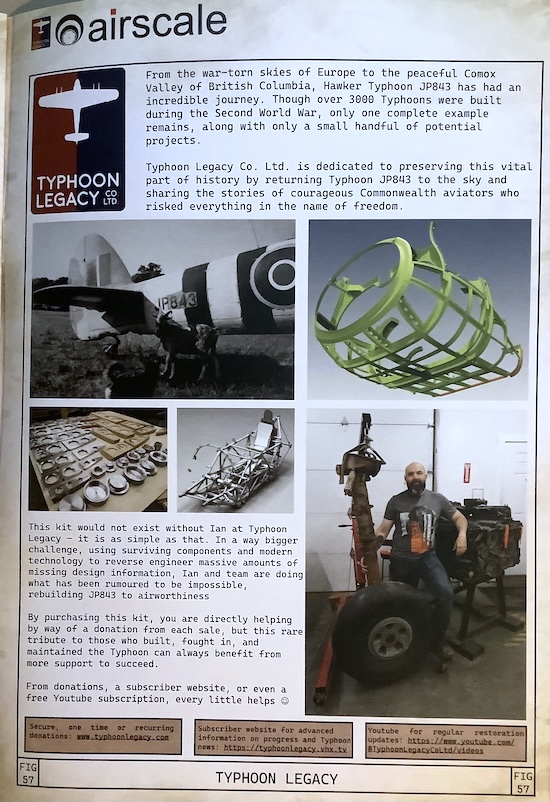 Most of the information which has enabled Peter to produce such a detailed and accurate kit has come from Ian Slater and his work restoring Typhoon JP843 to flying condition in Canada. In return, Peter is donating a percentage of his sales to Ian’s Typhoon Legacy project. Ian’s help is acknowledged in the instructions.