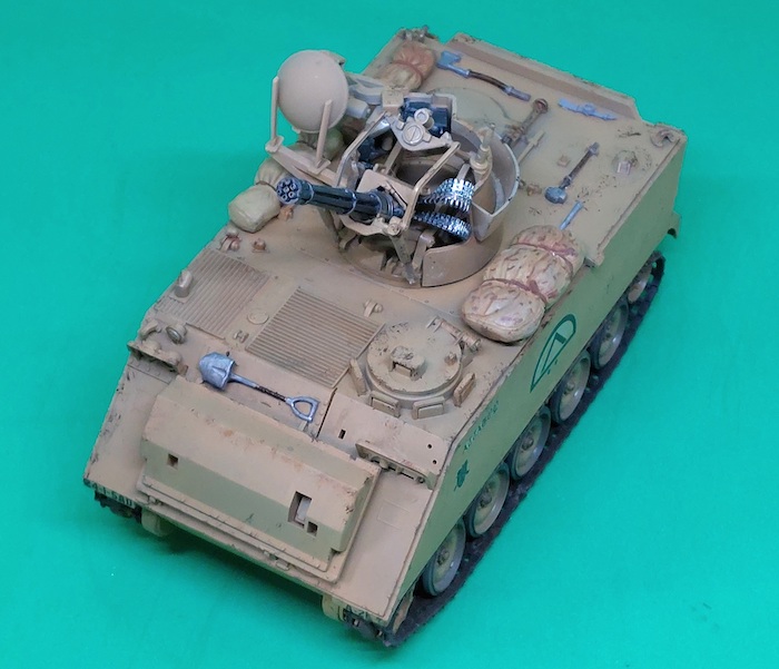 This is a re-issue of Academy’s original 1995 kit and is based on their M113 APC tooling. Because of this you will find a plethora of extra parts, relating to the APC, in the box. The top opening box has some nice artwork depicting the vehicle in a desert setting, firing its cannon at some unseen aerial target. Opening the box we find ten sprues of tan plastic exhibiting nice flash free detail, a single piece hull, a small PE fret and a single decal sheet. The single, folded sheet of instructions, at first glance, seemed adequate and offers a choice of three versions. Colour call-outs are for Humbrol, Aqueous Hobby Color, Mr Color, Lifecolor, Testors/Modelmaster, Revell and Vallejo.
