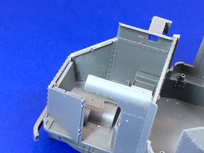There are some recessed circles on the vehicle’s interior. These look like ejector pin marks, but they aren’t. They are back sides of the vision ports so don’t fill them in!