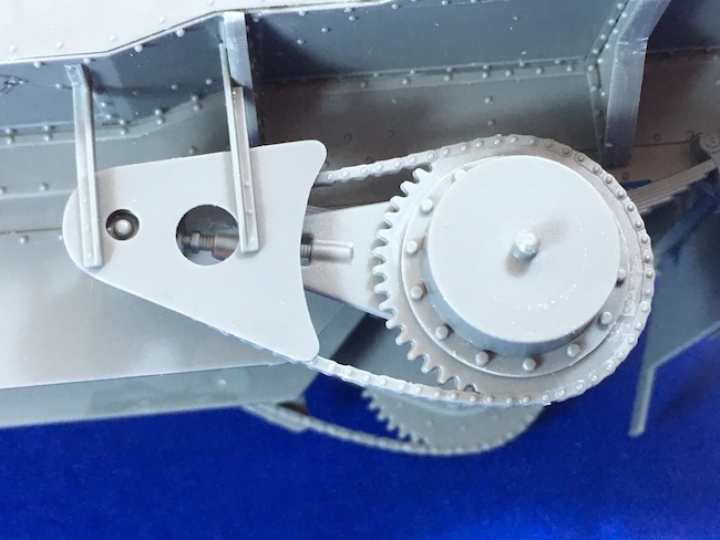 The chain drive for the rear wheels is included. I found that some trimming of the support arms for the armoured covers over the chain drives was necessary to get them to fit properly, but this was nothing serious.