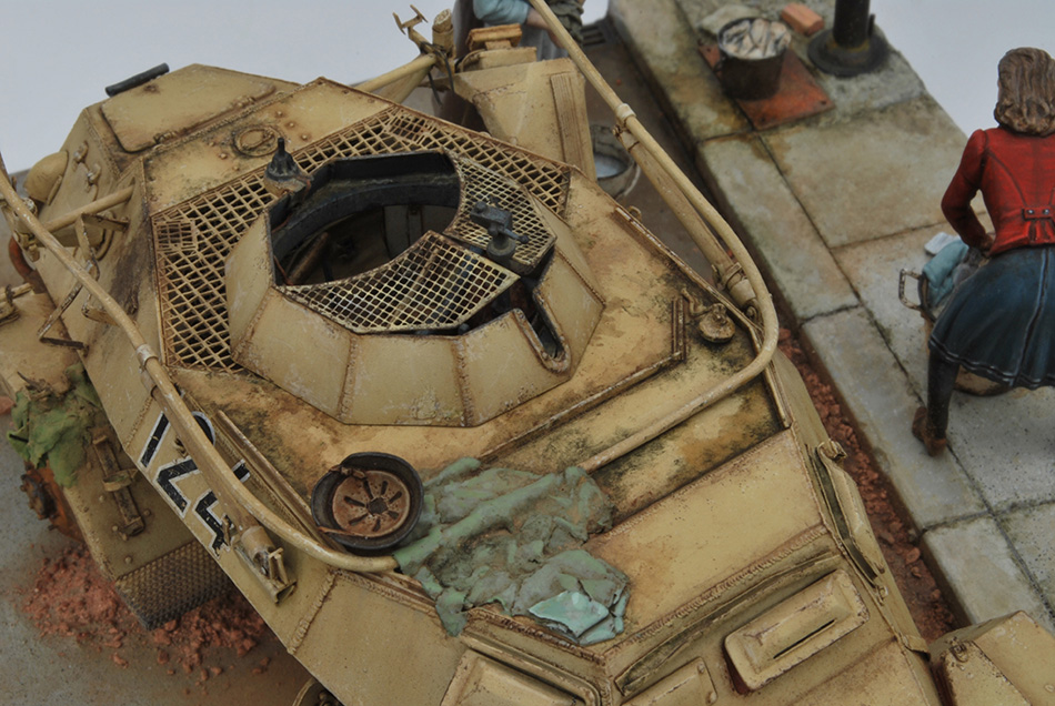 Model may be any armour subject:- a green base coat would be the optimum to recreate the chipping and dust effects.