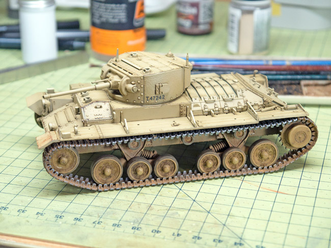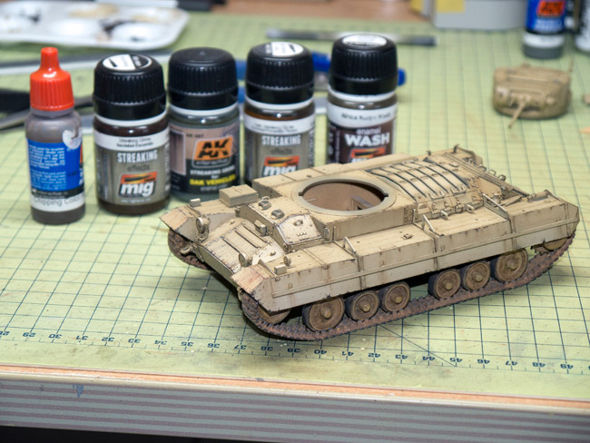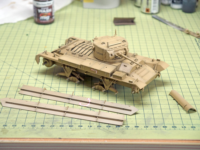 A panel wash of Mig Afrika Korps Wash was applied to the entire model and once dry the tracks were fitted.