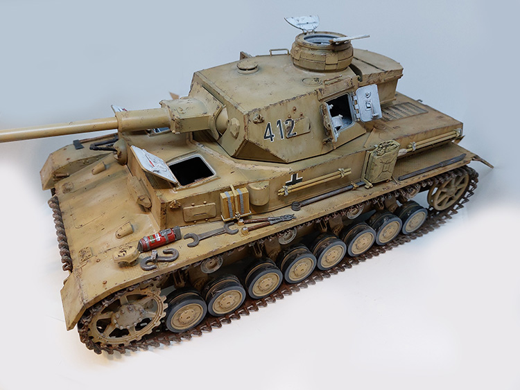 After enjoying building Trumpeter’s T34/76, I decided that another 16th scale tank was going to be my next project. The inspiration this time was a photo of my late father standing next to an abandoned Panzer IV in the Western Desert. The photo was marked on the back ‘Sidi Barani, Nov 42’. This must have been just after the El Alamein offensive. I therefore decided on Trumpy’s F2 version of its Panzer IV.