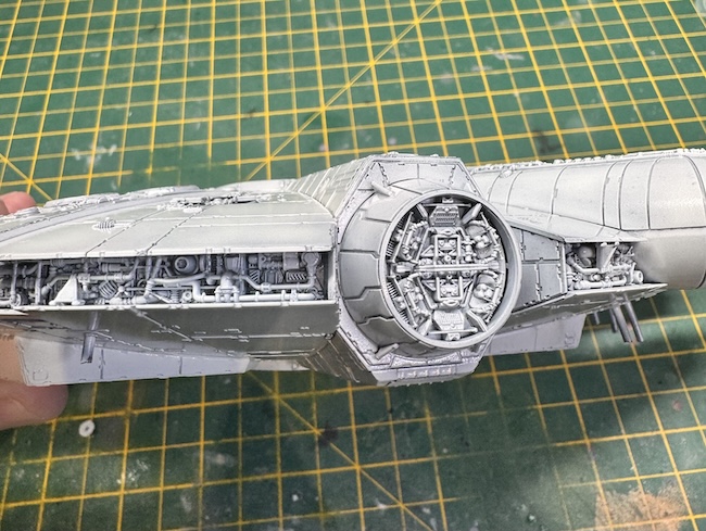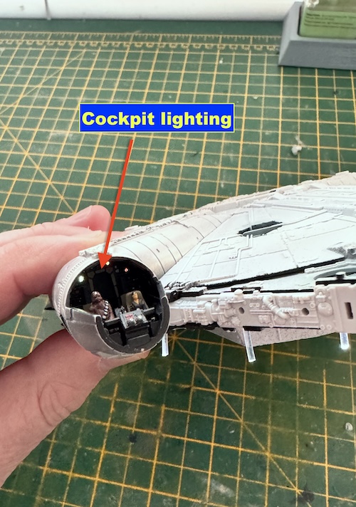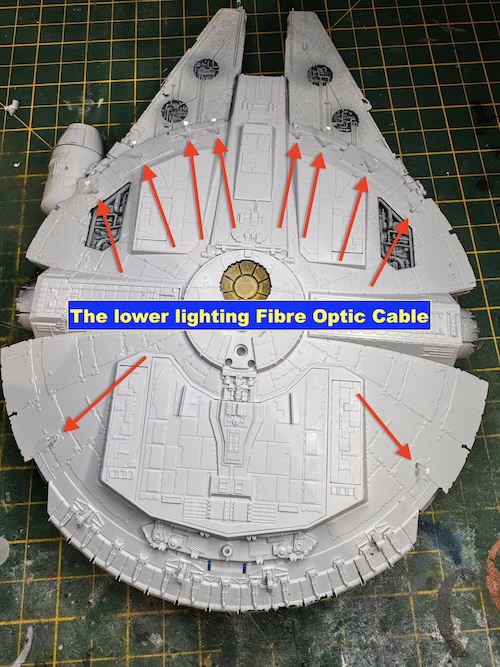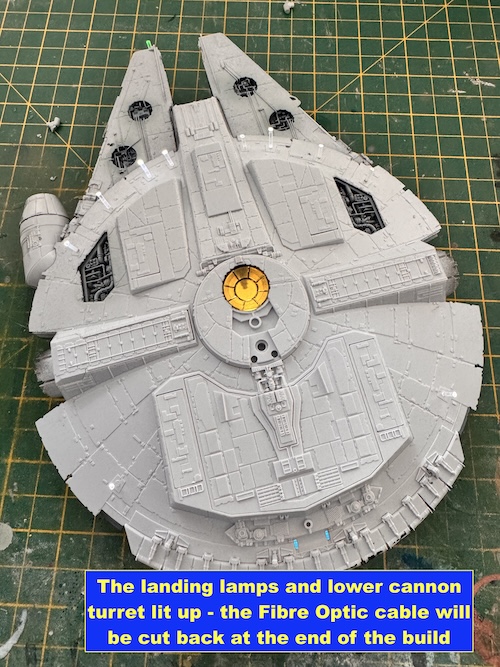With all the lighting system fitted and confirmation that it all worked the upper and lower sections were glued together. Care needs to be taken as there is a lot of wiring and cabling that could be damaged when pushing the halves together – take you time and if you encounter any resistance open up the halves to work out why – it took me a couple of attempts to deconflict all the cabling and wiring from the locating tabs. Before the glue was dry a quick check of the lighting system ensured it all still worked.