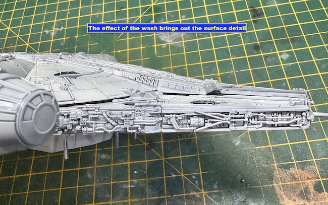 The fist stage of painting was to give the whole model a primer coat of Tamiya Fine Grey primer. I then used a dark grey to pre-shade the model before building up the grey base colour in thin layers to leave a mottled/weathered effect. With regards to the base grey I tried several colours as the grey is actually more of an off-white and the best match I could find in my paint inventory was MRP-256 Clear Bleached Dope Linen. The fine pigment of this paint allows the colour to be built up without losing the underlying pre-shading effect. I then gave the model a wash using Tamiya Dark Grey wash to bring out the detail. The surface detail picks up the wash nicely and gives a nice ‘grubby’ finish to the model.