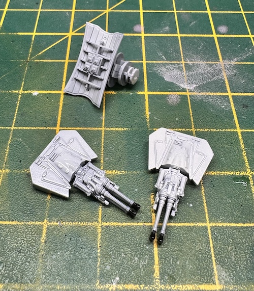 The upper and lower cannons and the comms antenna were also painted up at this stage.