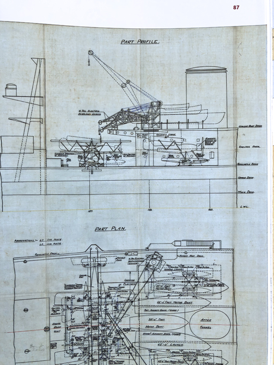 The technical details of British warships were recorded in a set of plans produced by the builders on completion of every ship. Known as the ‘as fitted’ general arrangements, these drawings represented the exact appearance and fitting of the ship as it entered service. Intended to provide a permanent reference for the Admiralty and the dockyards, these highly detailed plans were drawn with exquisite skill in multi-coloured inks and washes that represent the acme of the draughtsman’s art.