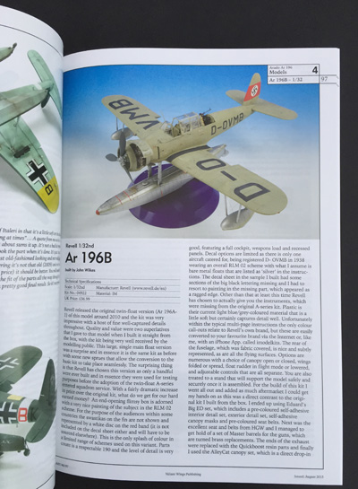 Amazingly, this is the seventh title to be published in short time in this growing series that offers modellers enough reference and guidance to scale modellers interested in building the type. I like many things about this series: the fact that models featured are in the most popular scales, making the book really useful to as wide an audience as possible. This has the spin-off effect of making me at least consider building a model of a subject I like (such as the Ar 196) in a different scale.