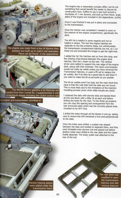 The contents follow with five individual builds and appendices on Churchill minutiae, details common to all marks, Mk I to Mk IV detail, Mk I and Mk II specific detail, Mk VII, Mk VIII and Crocodile details. Also included are engine reference, part templates, building the suspension the easy way and finally engine plans in 1:35 and 1:16 scale.