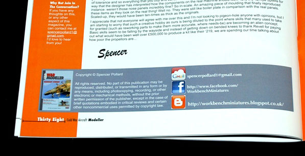 Many of you will no doubt be sad at the loss of Military in Scale, the title that Spencer used to head up as Editor. It was the only paper scale model magazine that I used to buy every month and when he departed it was a great shame. You can’t keep a good man down though can you because here he is – risen Phoenix-like to launch his own brand new title called Cold War Aircraft Modeller. I don’t think Spencer is fixed yet on the frequency of his new publication – maybe bi-monthly or quarterly looks likely at this stage from our discussions but check out his blog for the latest info.